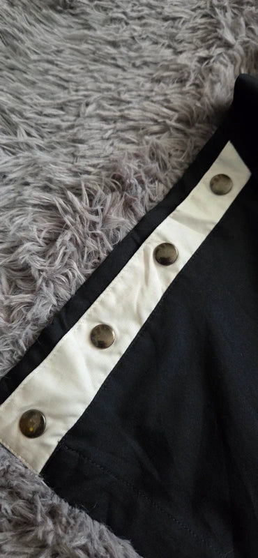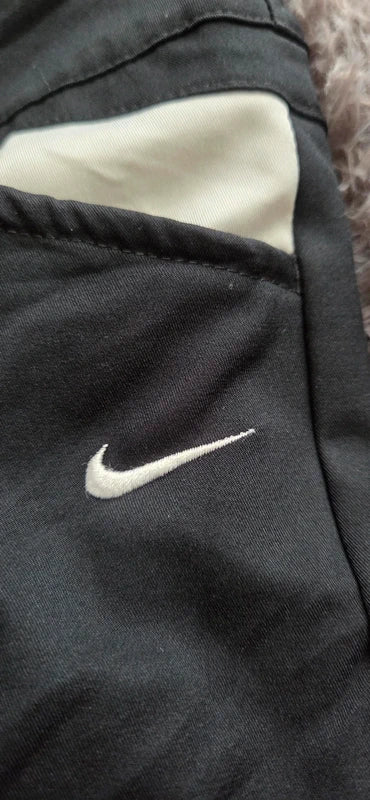 Pantalón original Nike de estilo deportivo con botonadura frontal y detalles en contraste blanco. Diseño clásico inspirado en prendas de entrenamiento retro, ideal para looks sport vintage o athleisure.