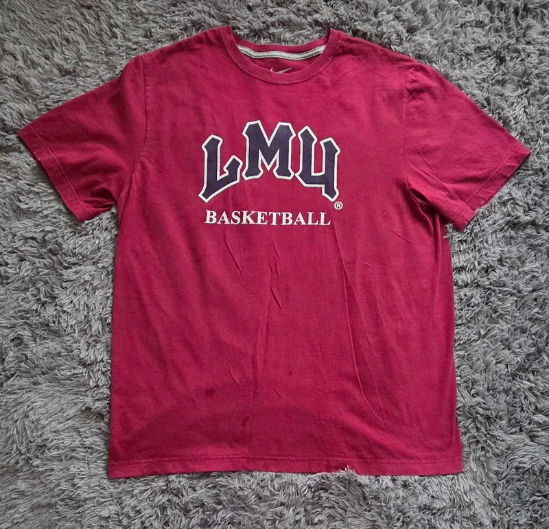 Camiseta universitaria original de Loyola Marymount University (LMU) con diseño Basketball en estilo college americano. Color granate clásico y corte cómodo, perfecta para looks streetwear vintage o para fans del baloncesto NCAA.