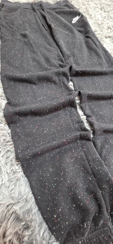 Pantalón Nike jogger original en color negro jaspeado. Diseño cómodo con cintura elástica y cordón ajustable, logo Nike bordado y bajos elásticos. Un básico imprescindible para looks streetwear, casuales o athleisure.