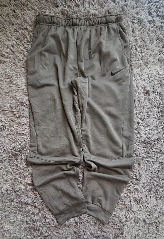 Pantalón Nike original tipo jogger en color verde oliva, con cintura elástica y bajos ajustados. Diseño cómodo y versátil con logo swoosh en contraste, ideal para looks streetwear, casuales y deportivos.